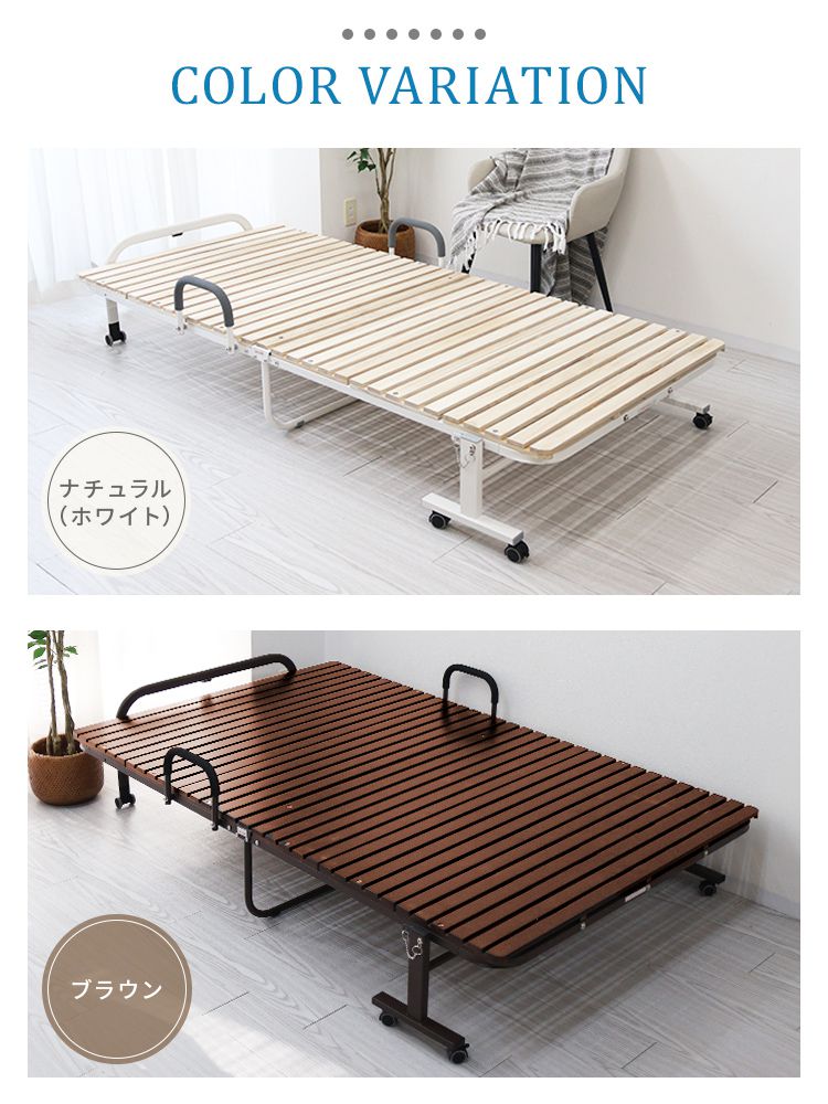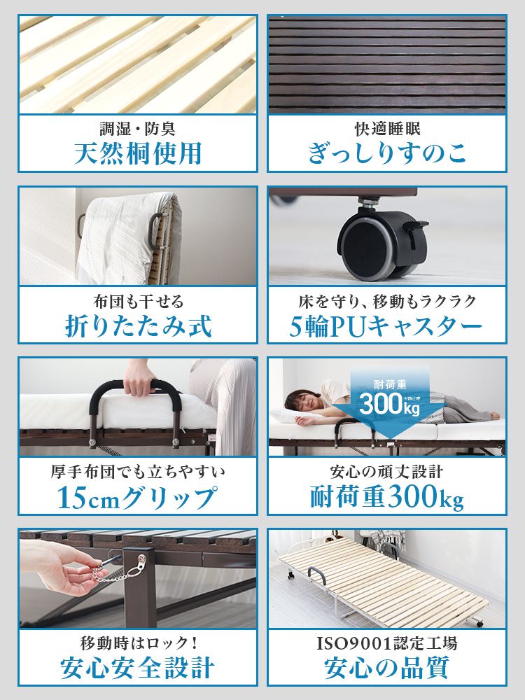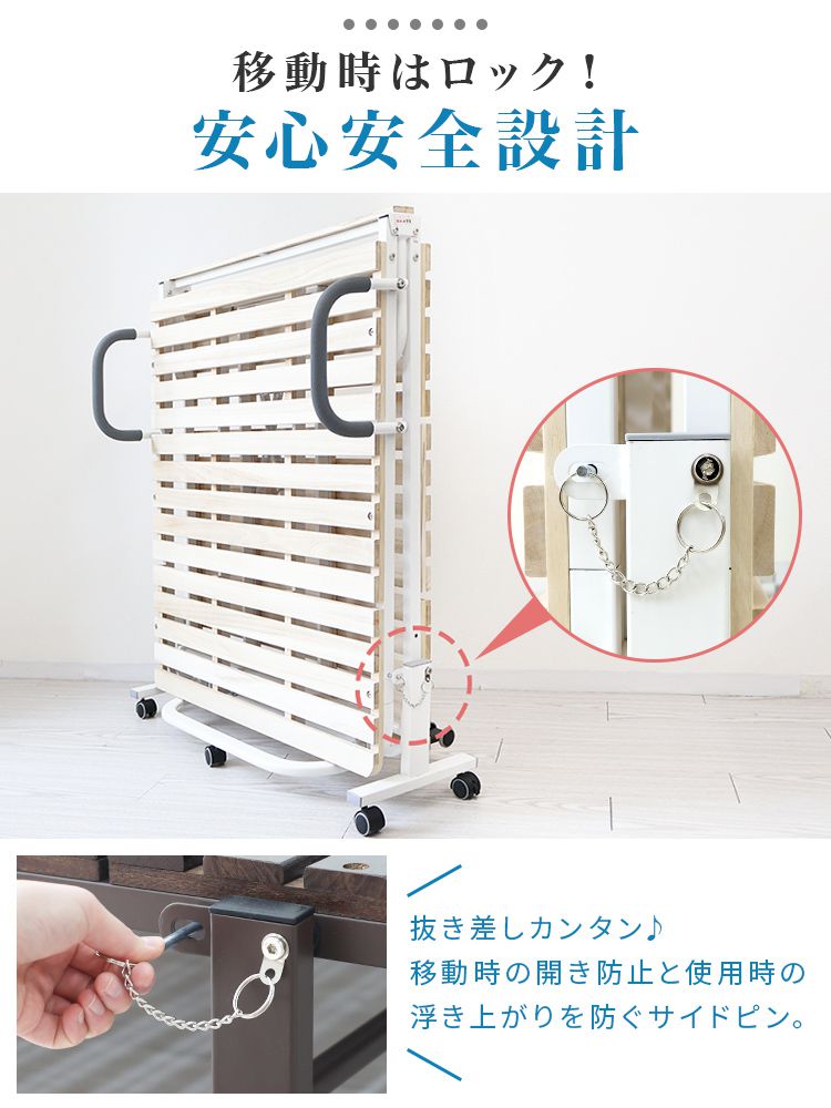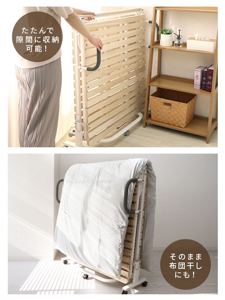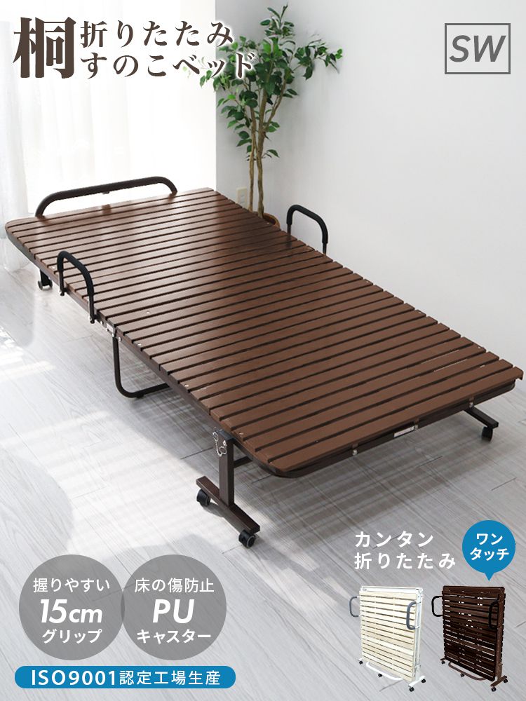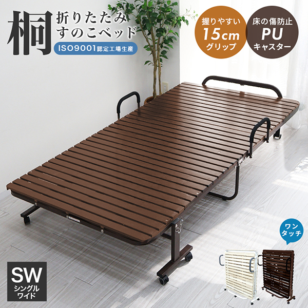 折りたたみベッド ワイド シングル 簡易ベッド すのこベッド ハイタイプ 桐 天然木 湿気対策 キャスター付き 木製 ベッドフレーム