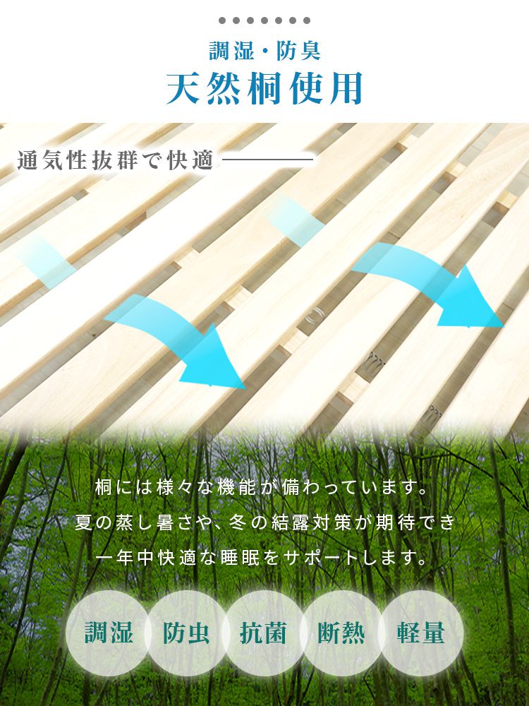 天然桐をぎっしり増量 通気性抜群の天然桐材を使用。