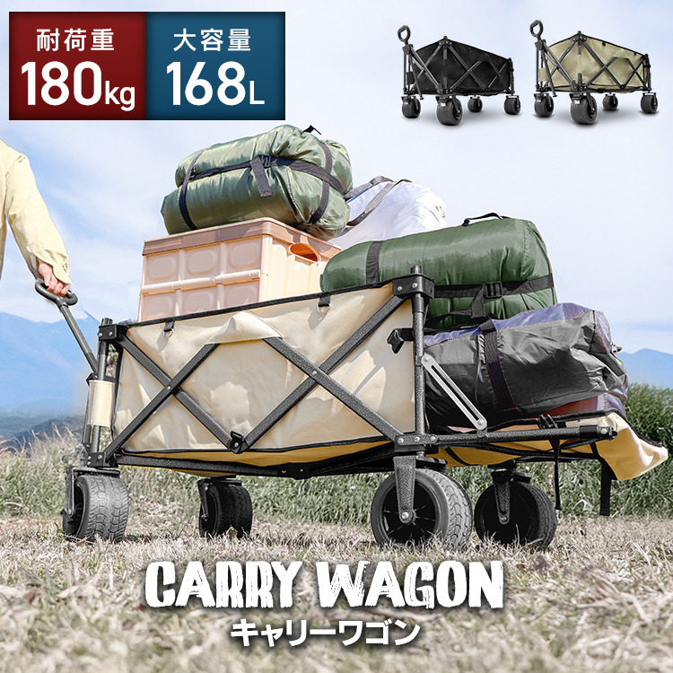 キャリーワゴン キャリーカート アウトドアワゴン 4輪 後ろ開け タイヤ大きい 軽量 大容量 168L