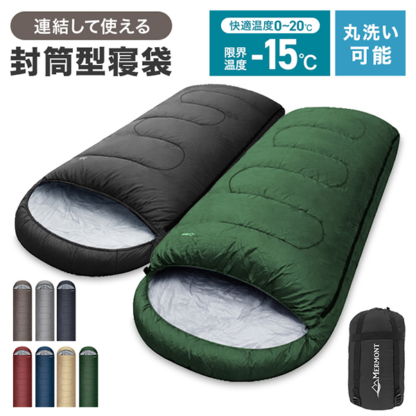 寝袋 冬用 最強 -15℃対応 封筒型 オールシーズン対応 防水 保温 軽量 撥水加工 コンパクト収納 春夏秋冬 キャンプ 車中泊 防災