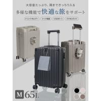 スーツケース キャリーケース Mサイズ 軽量 TSAロック USB充電ポート カップホルダー付き ハードタイプ 旅行 出張 静音