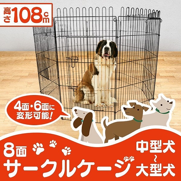 ペットゲージ ペットサークル 8面サークル 高さ108cm ケージ トレーニングサークル 犬小屋