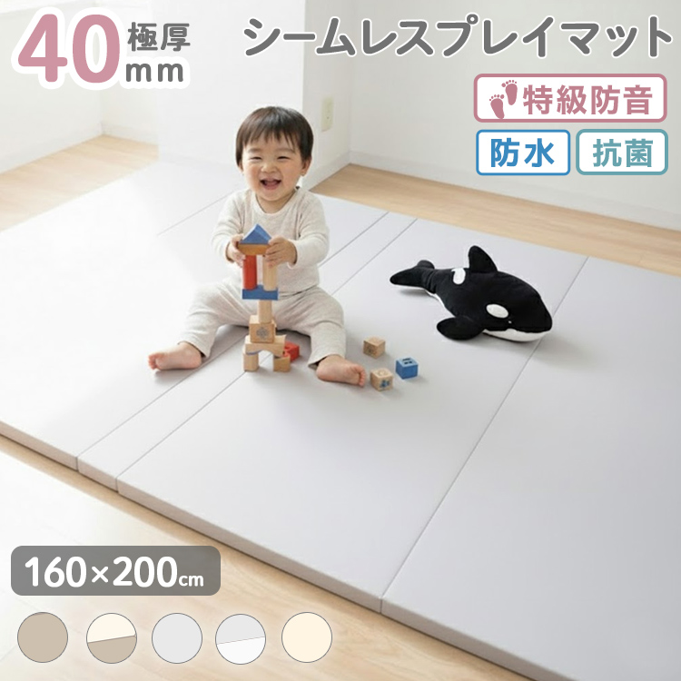 ベビープレイマット シームレス 大判 200×160cm 折りたたみ式 4cm厚 防水 防音 抗菌 床暖房対応 軽量 ノンホルム 赤ちゃん用フロアマット