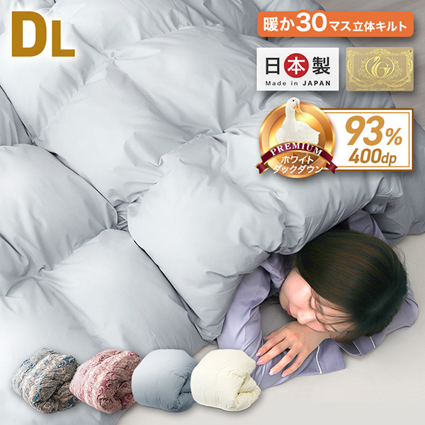 羽毛布団 ダブル 掛け布団 日本製 ホワイトダックダウン93% 30マス立体キルト ロイヤルゴールドラベル 暖かい 冬 抗菌 防臭 防カビ 無地 羽毛 布団 ふとん 寝具