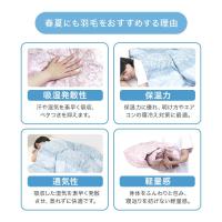 日本製、ダウンパワー400dp以上、パワーアップ加工、オゾンクリーン加工、立体キルト加工、二重縫製、布団留めループ8箇所付き、洗える
