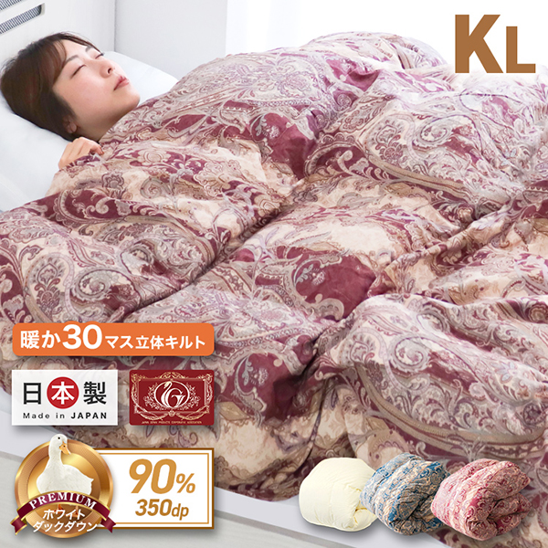 羽毛布団 掛け布団 キング 冬用 羽毛掛け布団 暖かい ロング 日本製 ホワイトダックダウン90% 30マス立体キルト エクセルゴールドラベル 抗菌 防臭 防ダニ