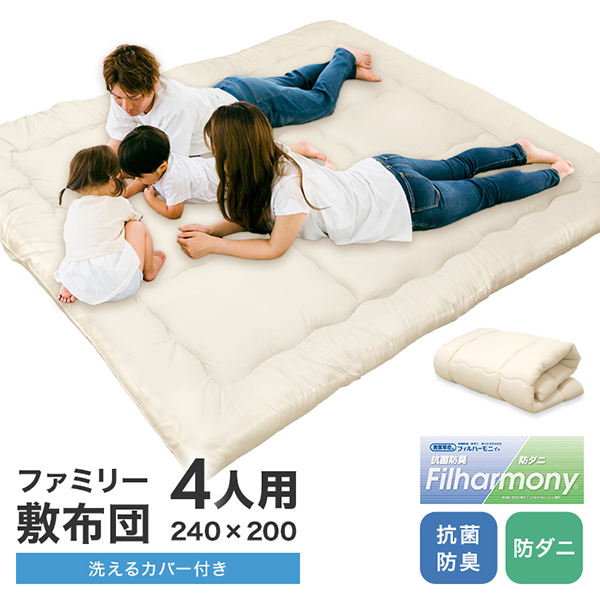 17日+5% 敷布団 ファミリー敷布団 ワイド 敷き布団 ファミリー 4人用 240×200cm 洗える カバー付き 抗菌 防臭 防ダニ 3層構造 家族