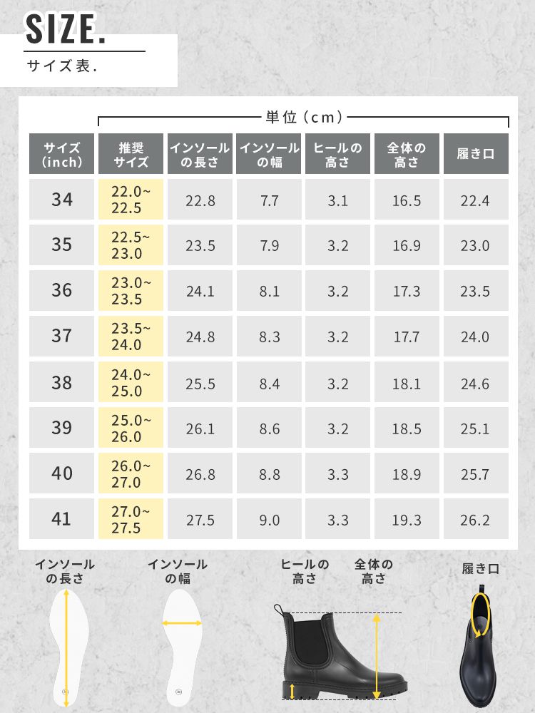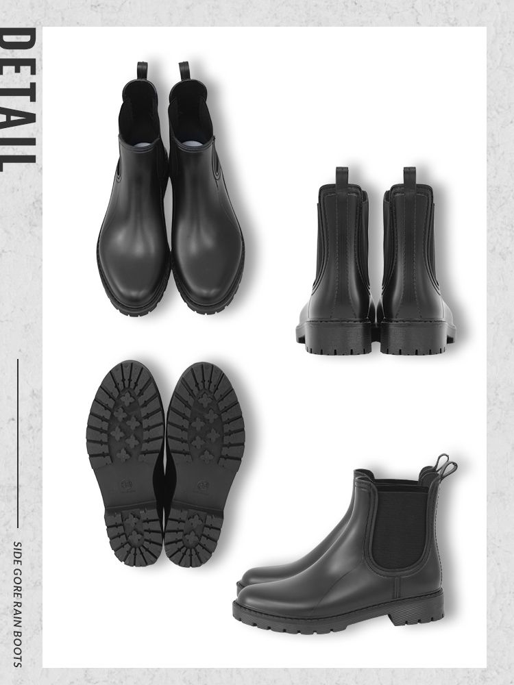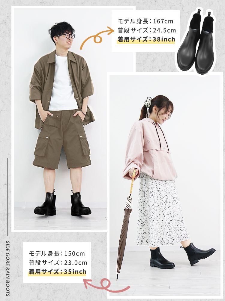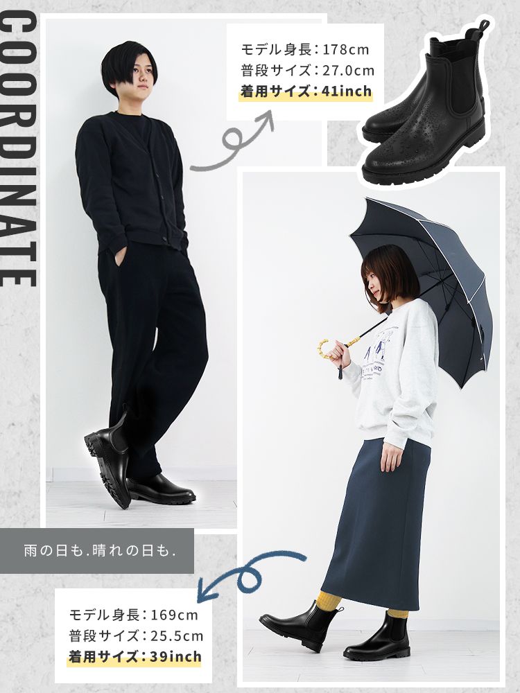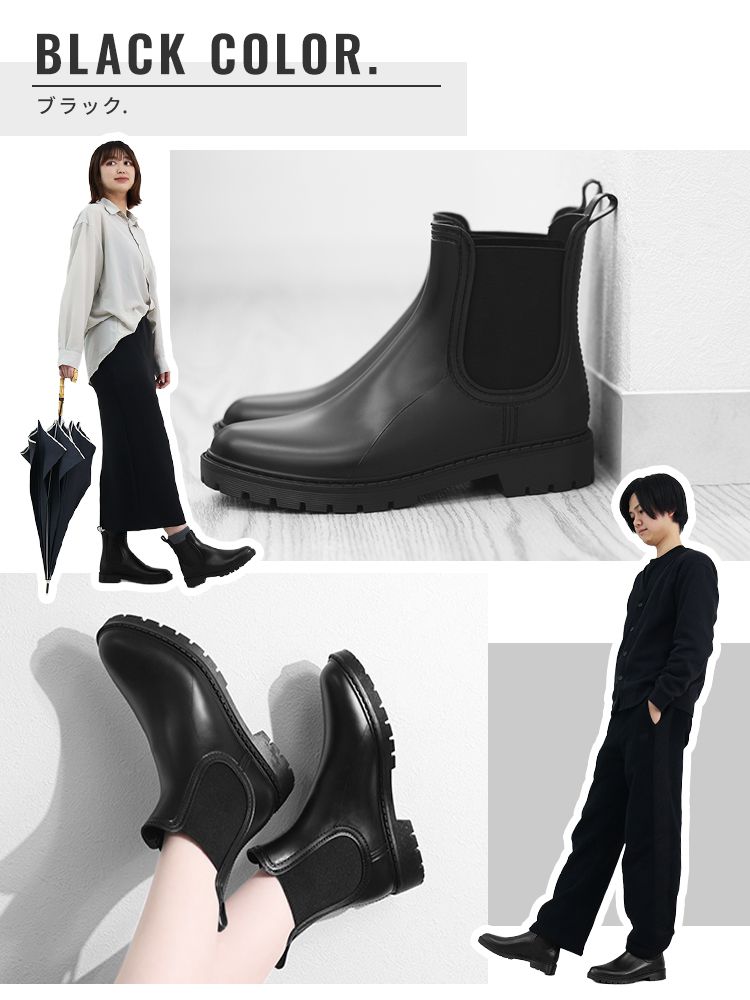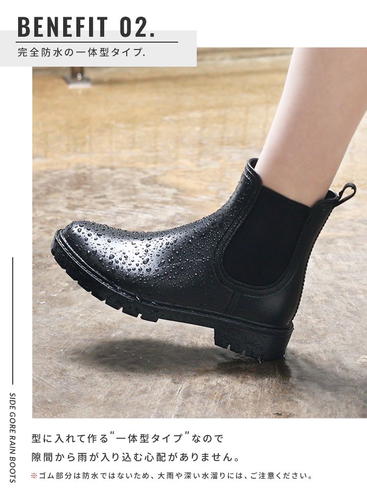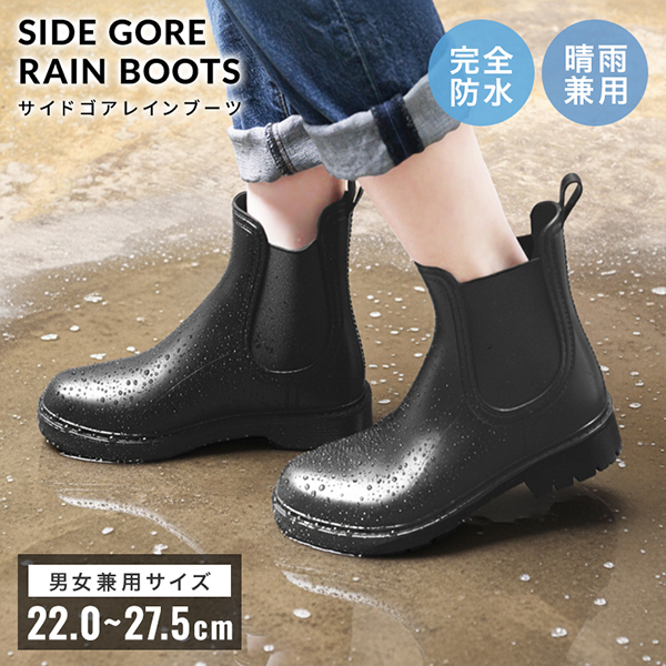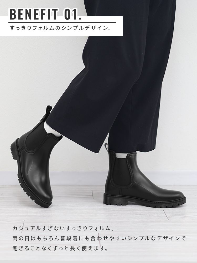 そんな方にぴったりな、スタイルを選ばず履ける、すっきりシルエットのサイドゴアレインシューズ。