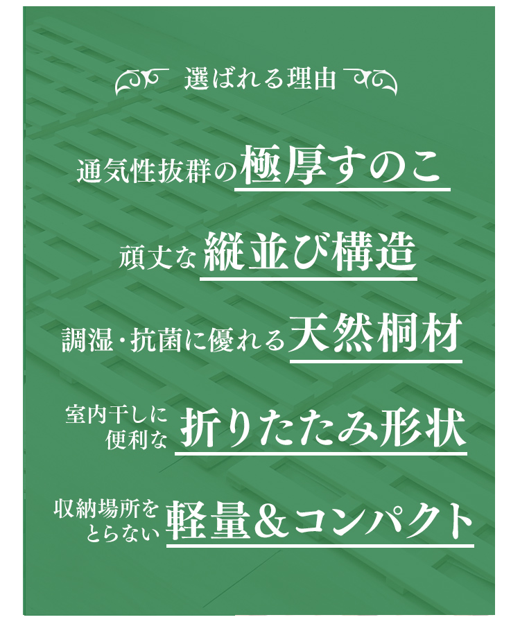 高さを設け、空気の通り道を作ることで湿気から布団を守ります。
