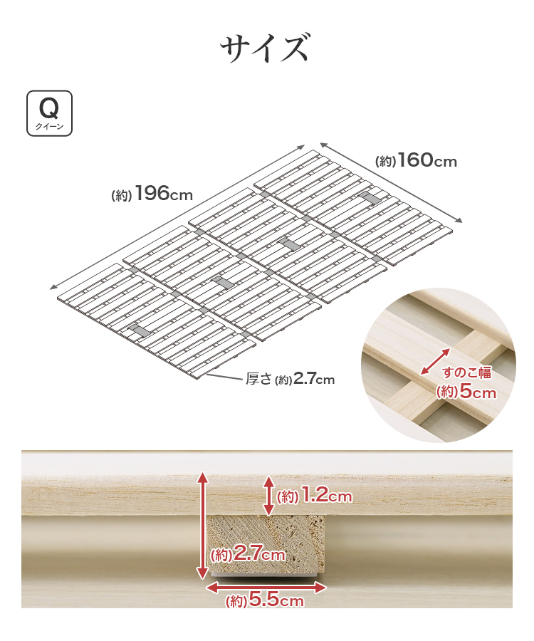 すのこベッド クイーン すのこマット 四つ折り 頑丈 ふとん 折りたたみ 桐 通気性抜群 カビ対策 布団対応