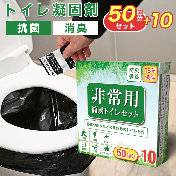 簡易トイレ 災害用 凝固剤 非常用トイレ 60回使い捨て 15年保存 簡易トイレセット 防災用品 防災グッズ 災害用簡易トイレ 個包装 車 テント アウトドア