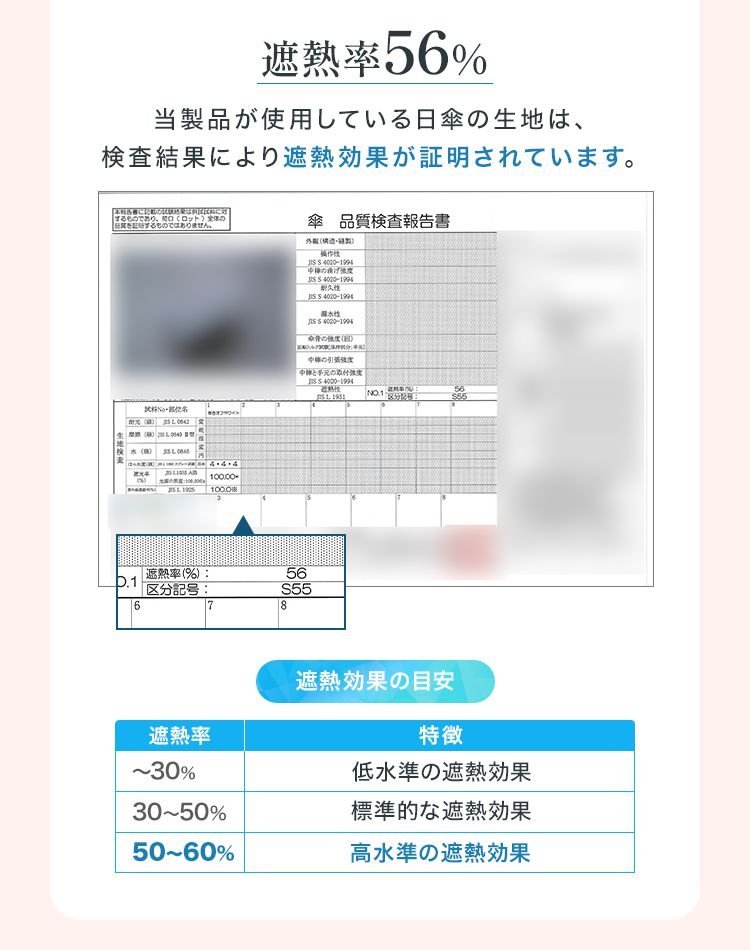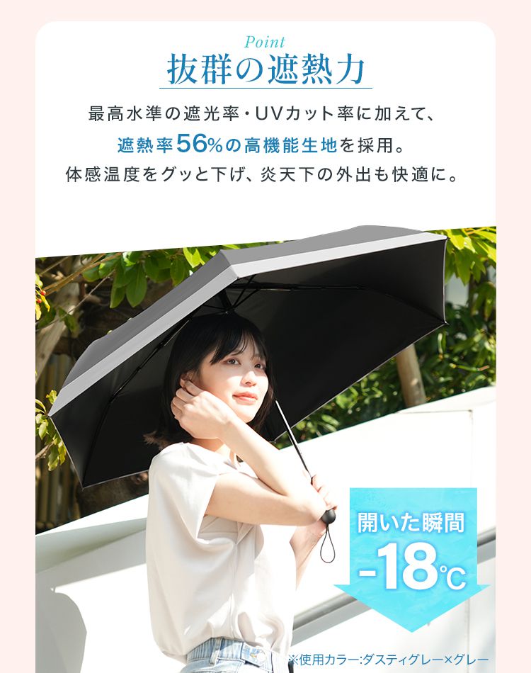 完全遮光&UVカット機能で99.9%以上の紫外線をブロックし、肌をしっかり守ります。