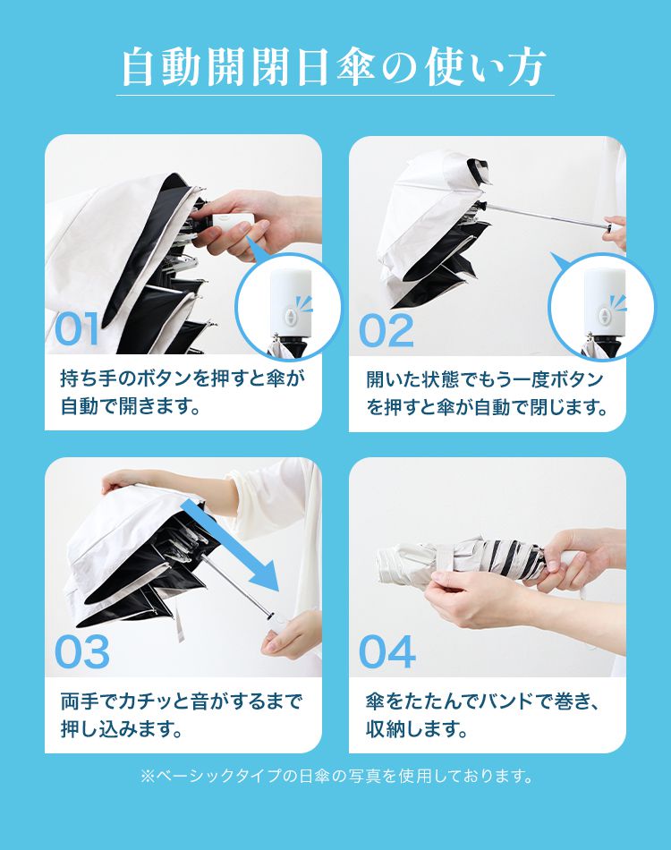ワンタッチの自動開閉機能付きで、片手で簡単に開け閉めできるのも魅力。