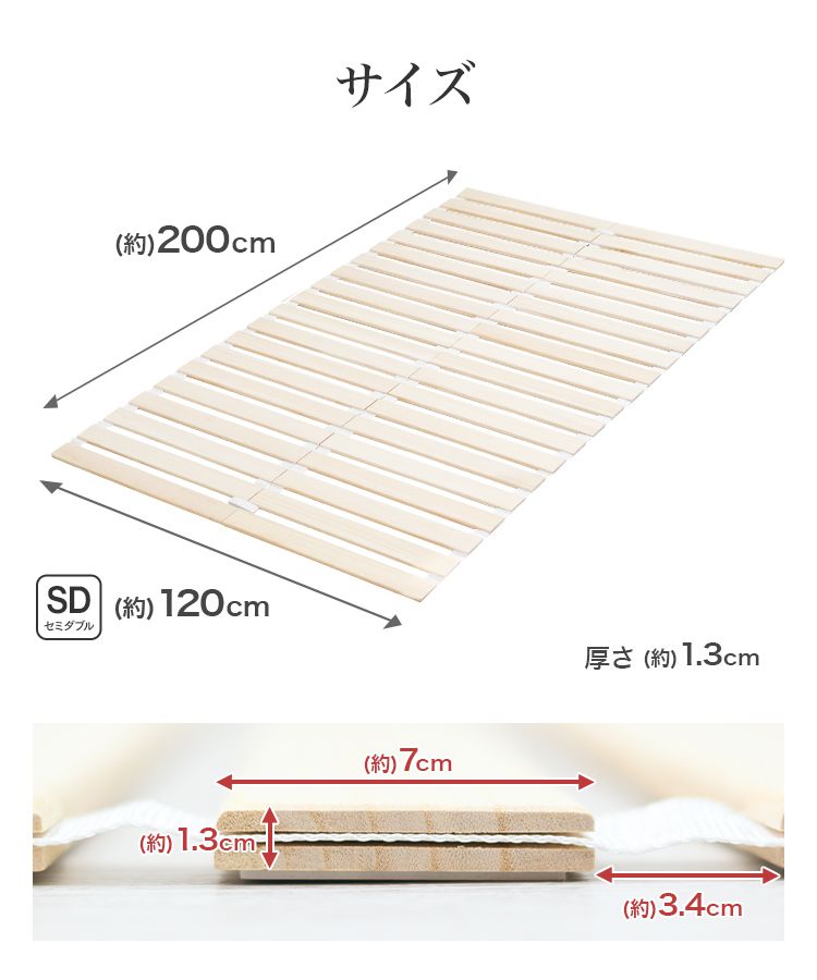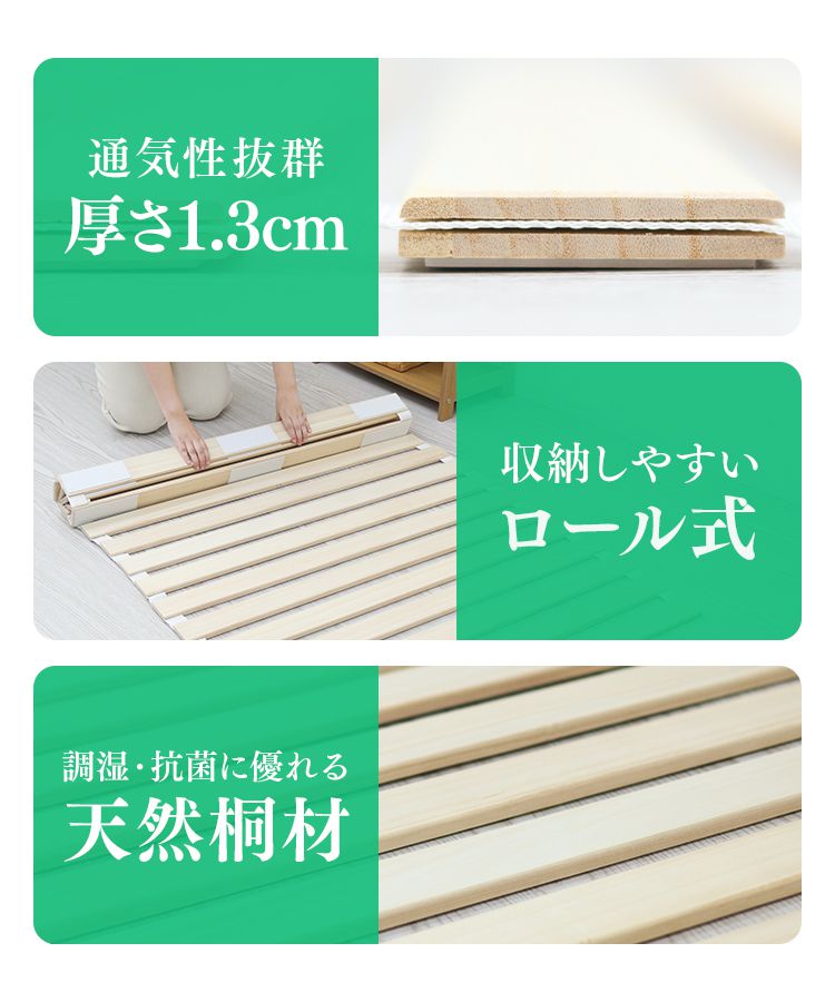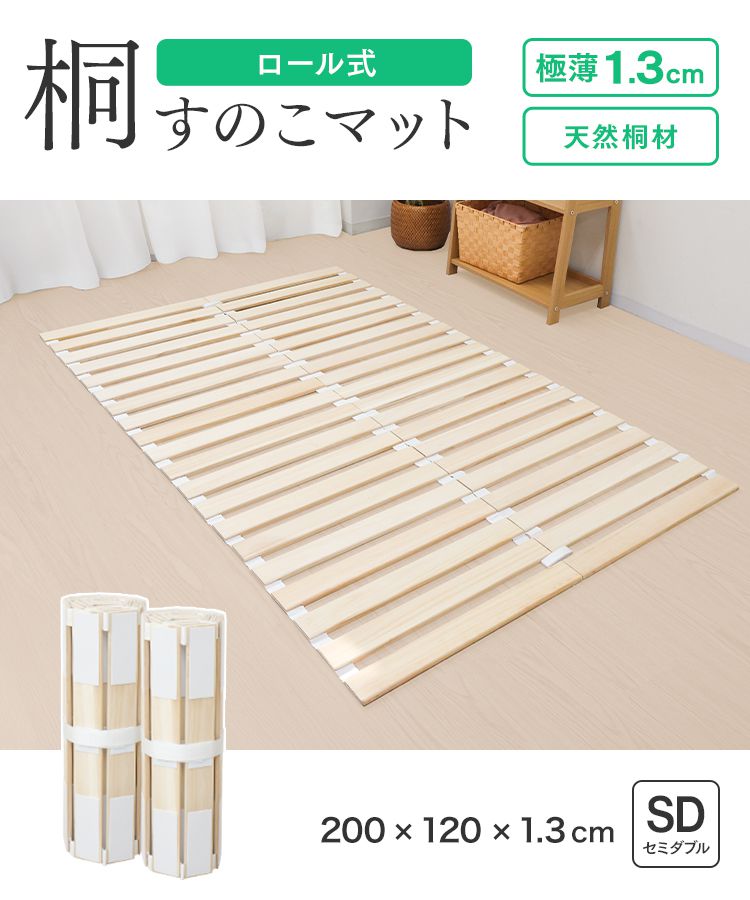 すのこベッド セミダブル すのこマット ふとん すのこ ロール式 薄型 折りたたみ 桐 マットレス コンパクト 布団下 湿気対策 除湿