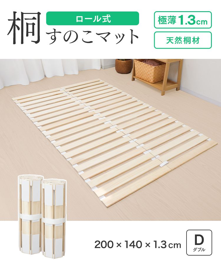 17日+5% すのこベッド ダブル すのこマット ふとん すのこ ロール式 薄型 折りたたみ 桐 マットレス コンパクト 布団下 湿気対策 除湿