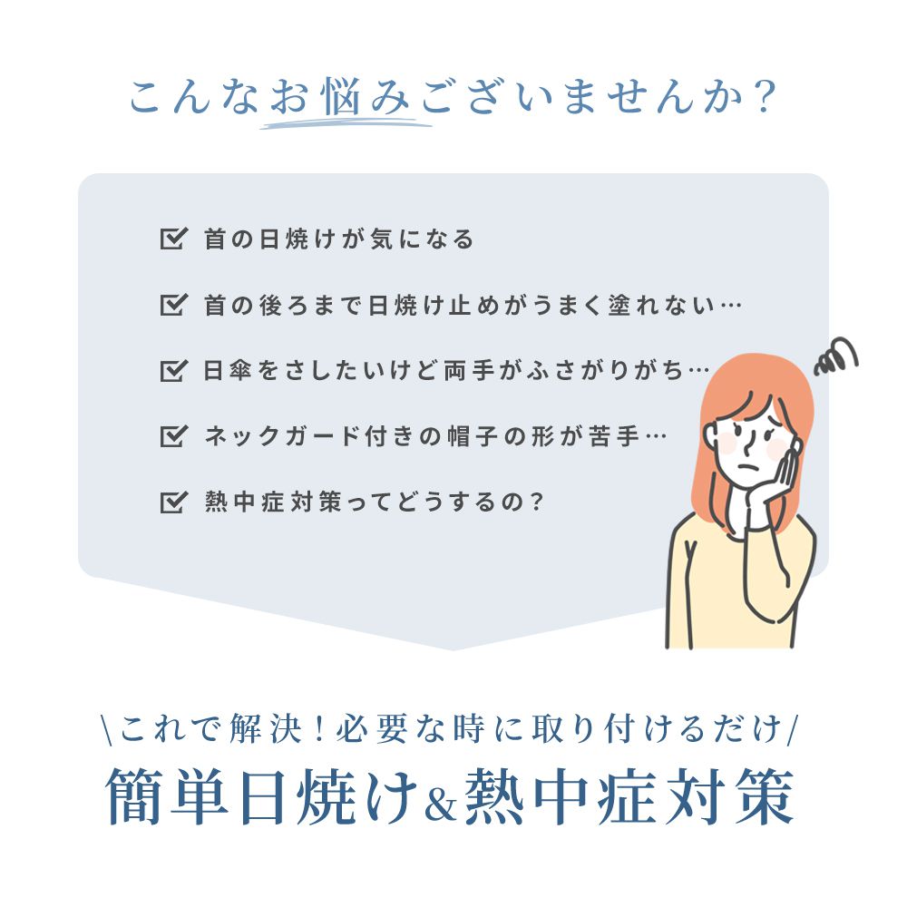 首元が開いた服でもしっかりカバーし、暑い夏の日焼け防止・熱中症対策にぴったりです。