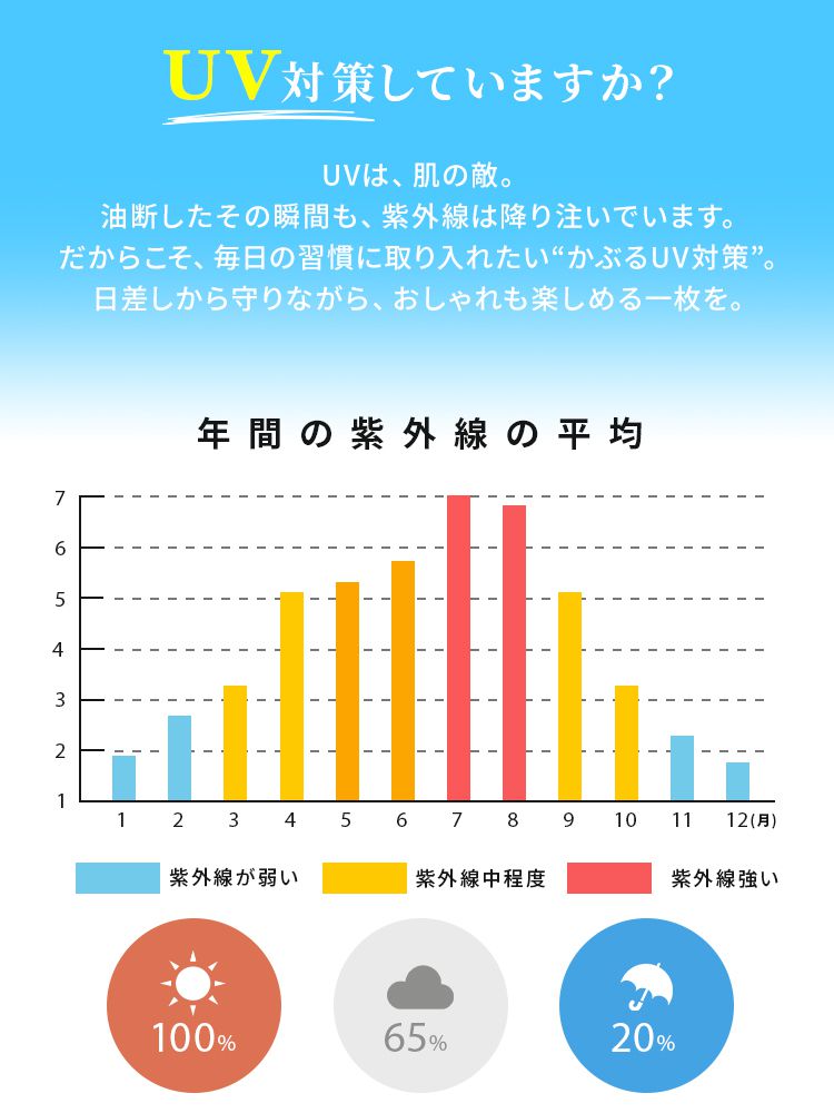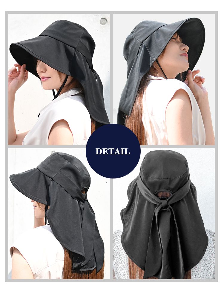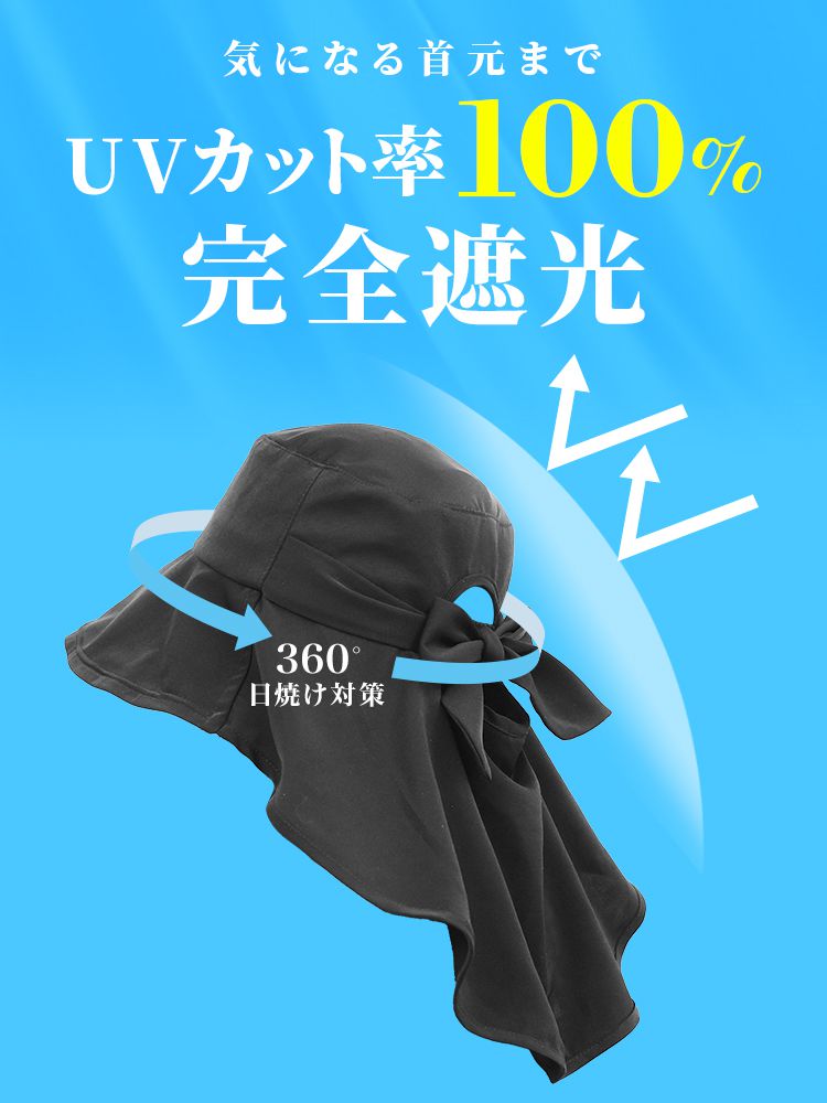 遮光率100%で強い日差しから顔・首・耳まで360度しっかりガードするレディースUVハットです。