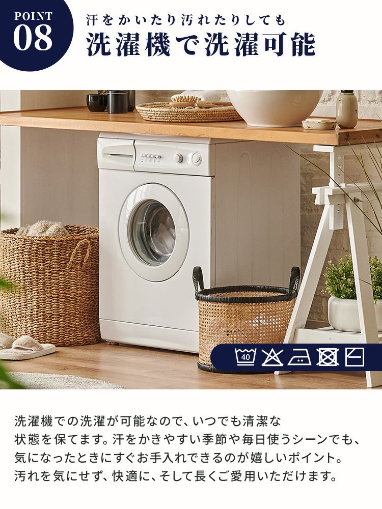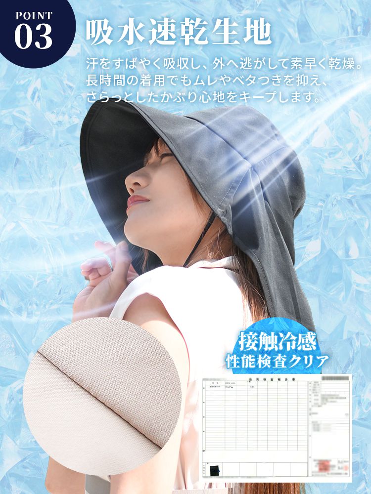 裏地にはひんやりとした接触冷感生地を使用し、ムレを軽減して真夏でも快適なかぶり心地をキープします。