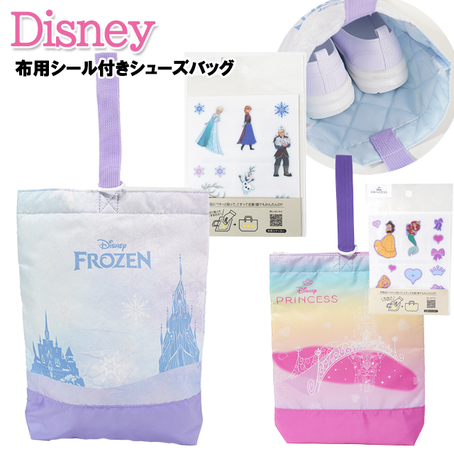 シューズバッグ 子供 キッズ ディズニー ポリ 転写シール 布用ステッカー 付き 上履き入れ / 女の子 小学生 園児 ディズニープリンセス 入園 入学 【メール便】