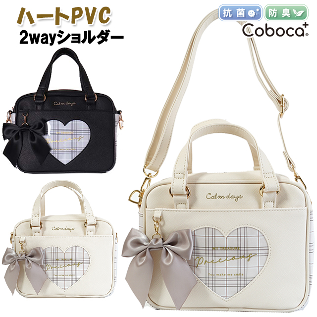 ショルダー キッズ 子供 Coboca+ コボカ ハート PVC チェック 合皮 リボン チャーム付き 2wayショルダー / バッグ 女の子 ジュニア ティーン 小学生 可愛い