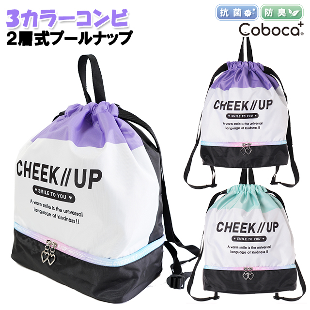2023 プールバッグ 女の子 子供 キッズ 2層式 プールナップ Coboca+ コボカ 抗菌 防臭 ポリ 3カラー / ナップサック ボンザック 2段式 小学生 【メール便】
