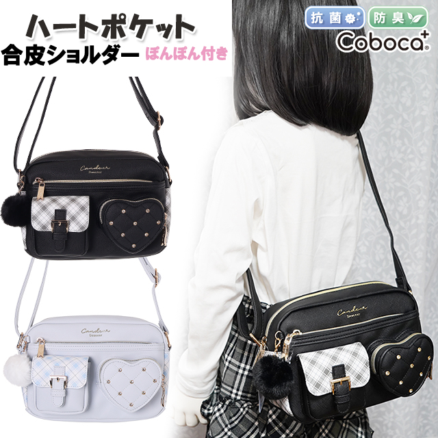 ショルダー 子供 キッズ 女の子 小学生 ハート ポケット 合皮 チェック ビジュー ぽんぽん 付き バッグ Coboca+ コボカ / ティーン ジュニア かわいい