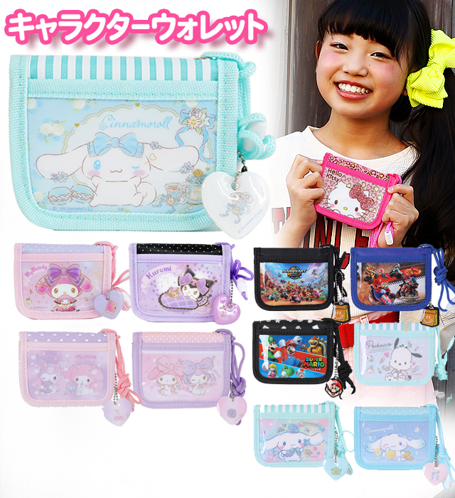 財布 キャラクターウォレット(SA) ネック紐付き 女の子 男の子 / 子供用 小銭入れ 二つ折り財布 サンリオ マリオ 【メール便】