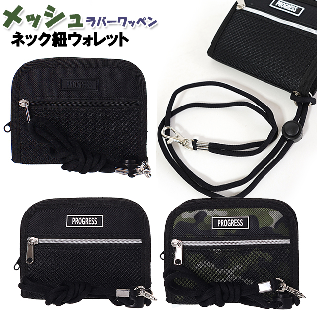 財布 メッシュ ラバー ワッペン付き ネック紐付き ウォレット / 子供用 男の子 キッズ ジュニア ティーン 小学生 中学生 【メール便】