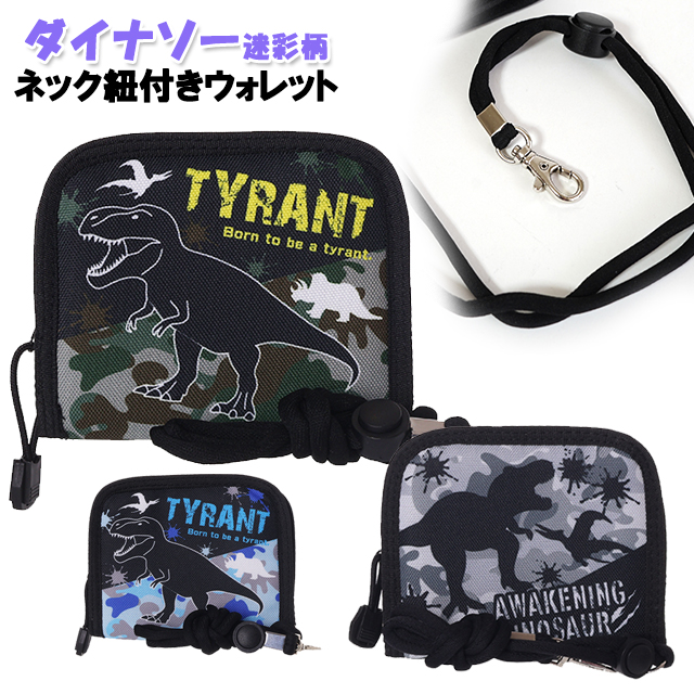 財布 キッズ 子供 ダイナソー 迷彩 ポリ ネック紐 付き ウォレット / 子供用 男の子 ジュニア ティーン 小学生 恐竜 【メール便】