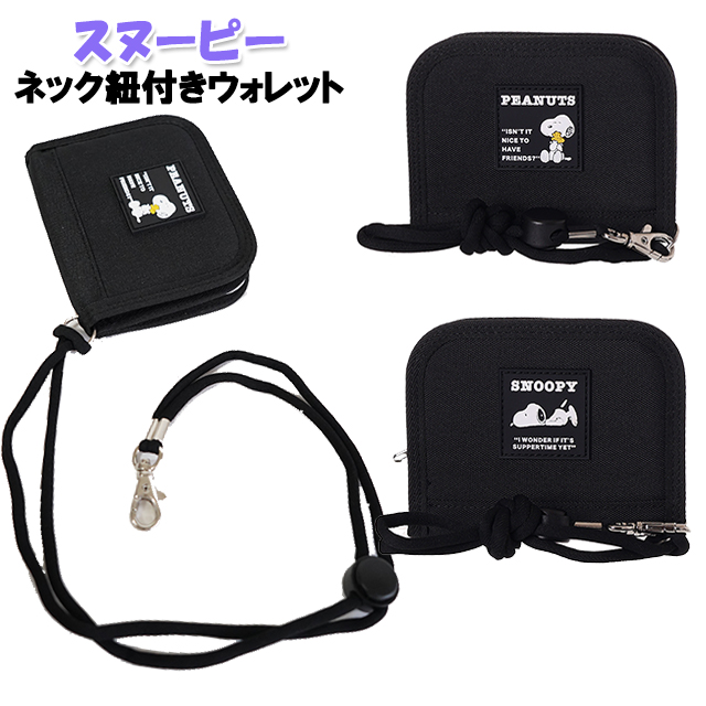財布 子供 キッズ 小学生 スヌーピー ラバーワッペン 付き ネック 紐付き ウォレット 二つ折り財布 / 男の子 女の子 ジュニア バリバリ財布 【メール便】