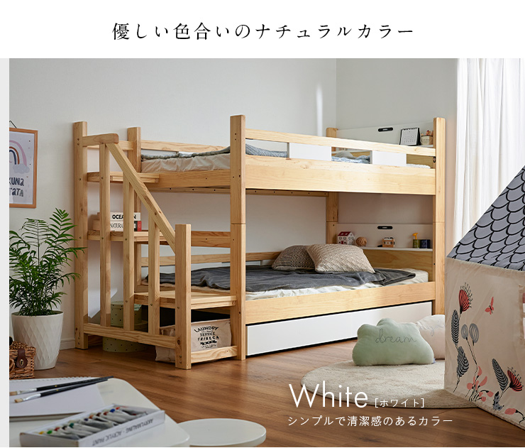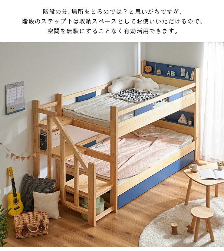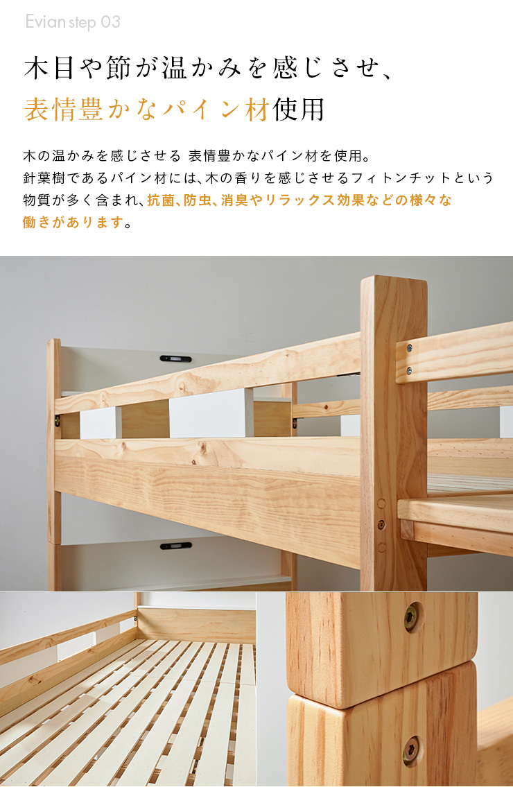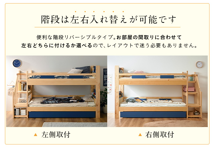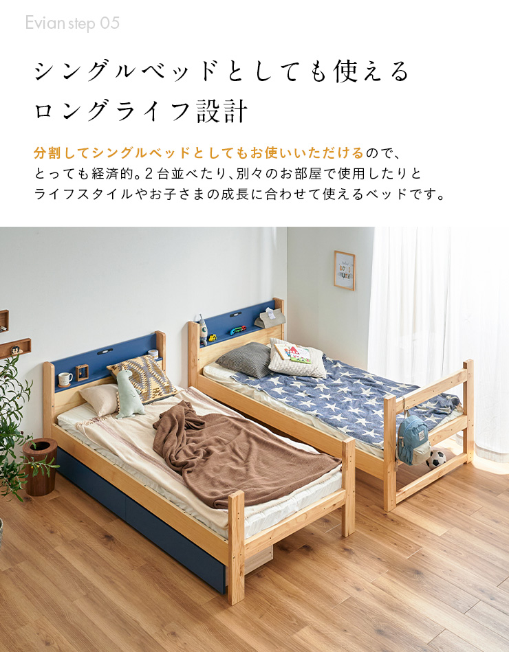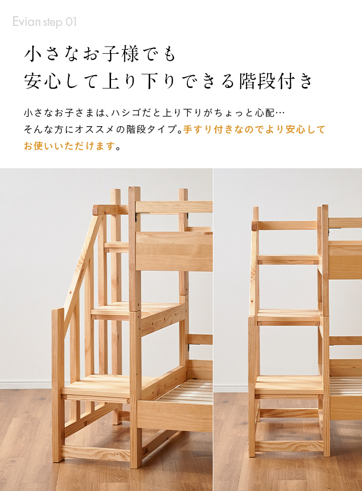 二段ベッド 大人用 子供 階段付き 2段ベッド 2段ベット階段付 引き出し収納付 分割可能 コンパクト 木製 おしゃれ 宮付き エビアンステップ 2色対応