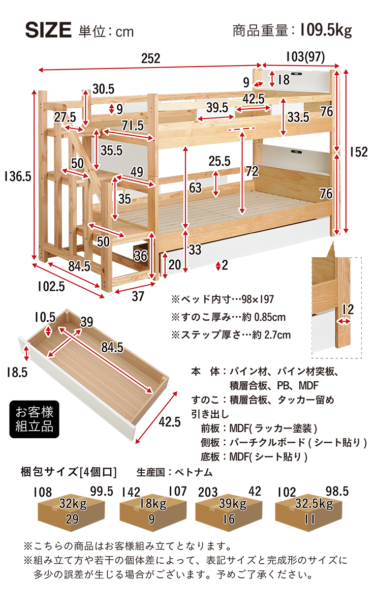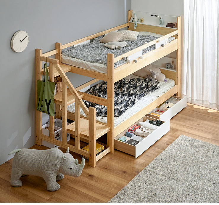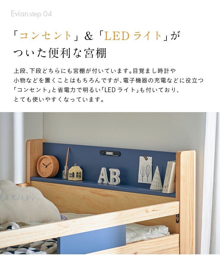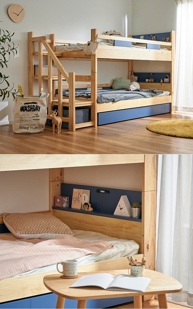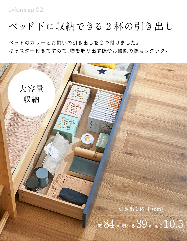 二段ベッド 大人用 子供 階段付き 2段ベッド 2段ベット階段付 引き出し収納付 分割可能 コンパクト 木製 おしゃれ 宮付き エビアンステップ 2色対応