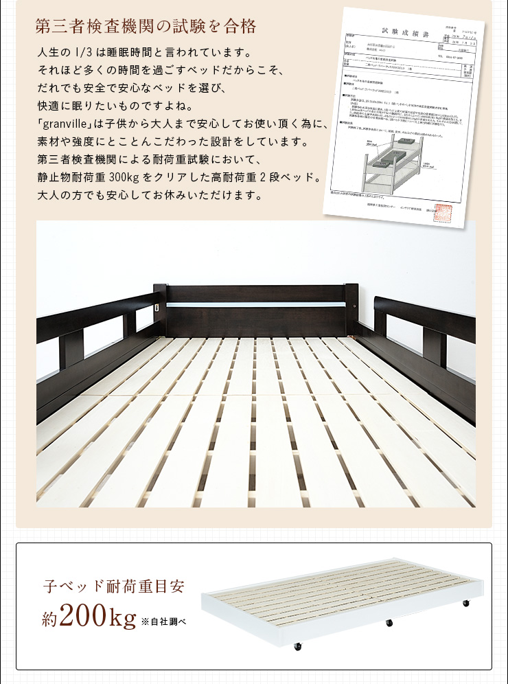 二段ベッド 大人用 子供 耐荷重300kg 耐震設計 分割可能 三段ベッド 3段ベッド おしゃれ 木製 子供用親子ベッド Granville2(グランビル2) 2色対応
