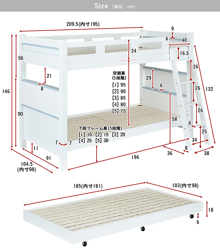子ベッド内寸:181 × 98cm(SSサイズ)