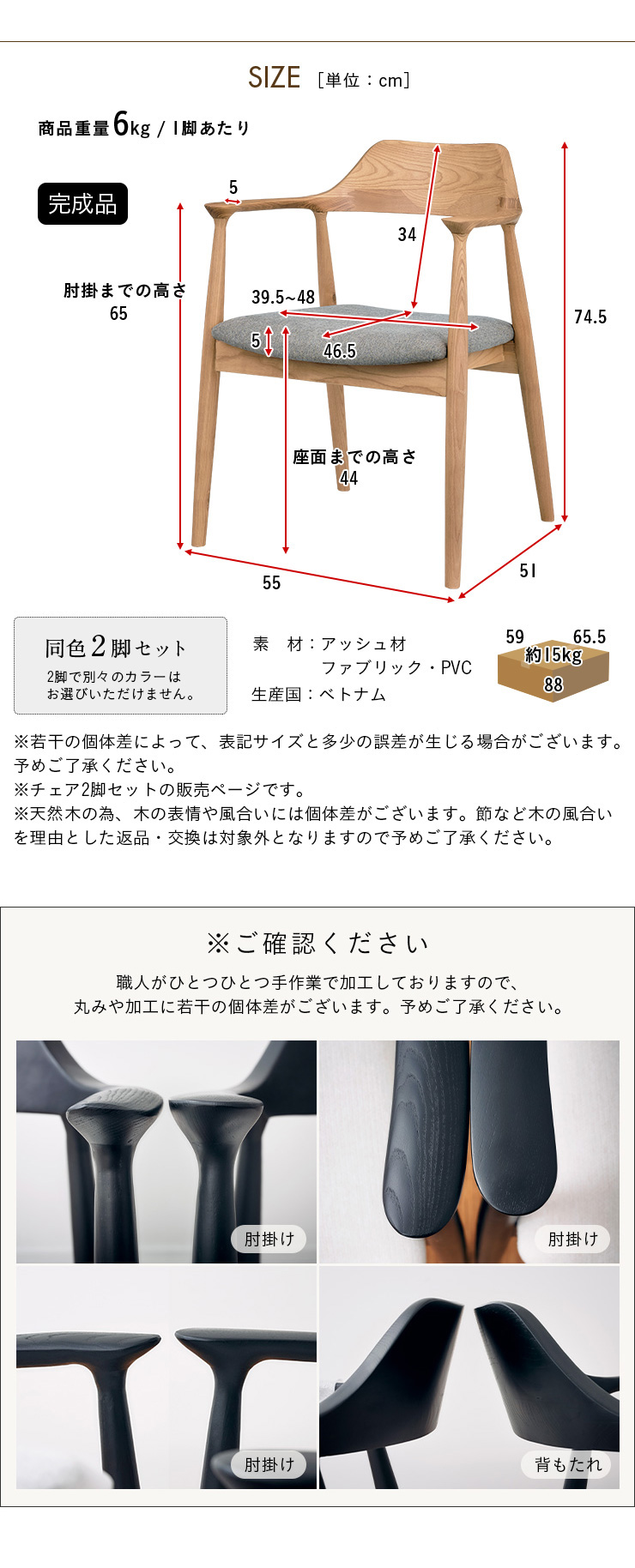 完成品 ダイニングチェアー ダイニングチェア デスクチェア 食卓椅子 いす 布地 PVCレザー おしゃれ 木製 肘付きチェア Shaun(ショーン) 2脚セット 11色対応