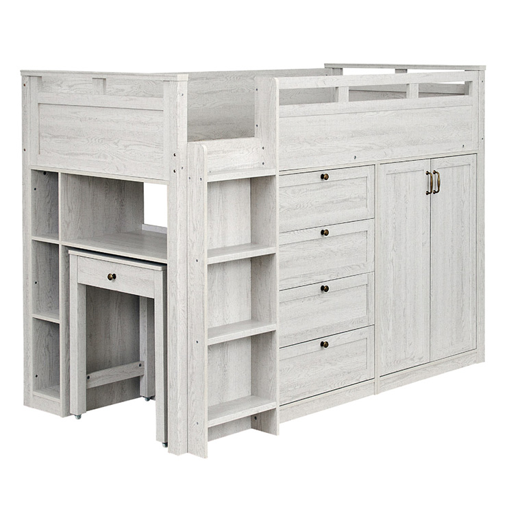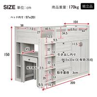 システムベッド 子供 大人用 ロフトベッド 階段 デスク付き シングルベッド おしゃれ 学習デスク 勉強机 キャスター 収納棚 子供部屋 ミドルタイプ noix(ノワ)