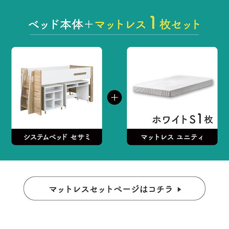 システムベッド 子供 大人用 ロフトベッド シングル ロータイプ 木製 キャスター付き 学習机 おしゃれ シンプル 北欧 Sesame(セサミ) 3点セット 2色対応