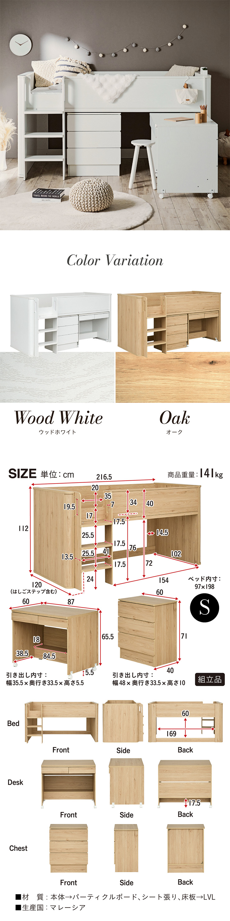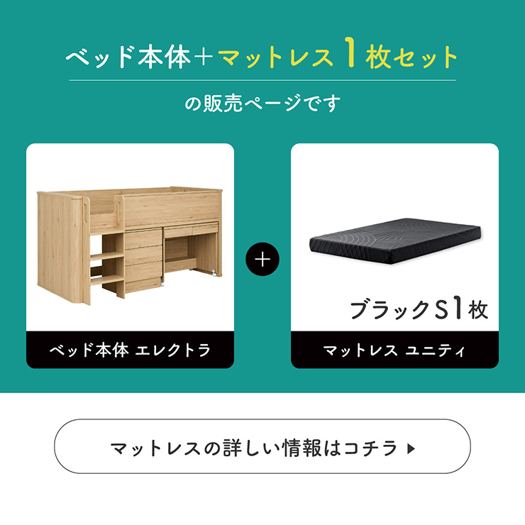 システムベッド 子供 大人用 ロータイプ デスク ロフトベッド 机付き マットレス シングル Electra エレクトラ 2色対応 + Unity ユニティ ブラック