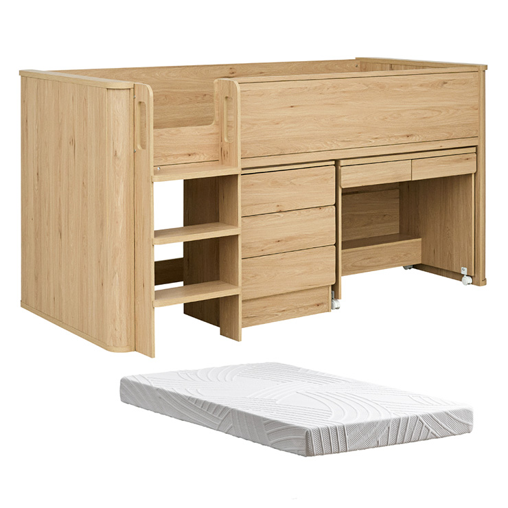 システムベッド 子供 大人用 ロータイプ デスク ロフトベッド 机付き マットレス シングル Electra エレクトラ 2色対応 + Unity ユニティ ホワイト