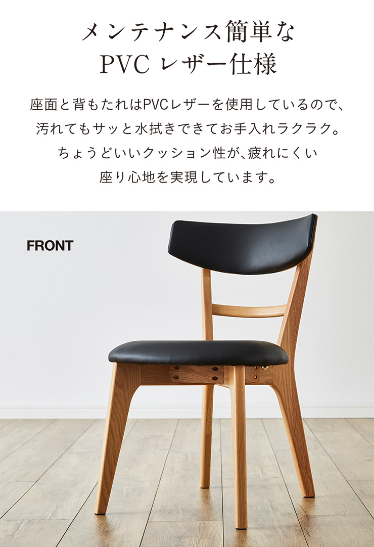 完成品 ダイニングチェアー 椅子 イス PVCレザー 木製 無垢材 おしゃれ シンプル ナチュラル モダン ダイニングチェア 2脚セット HELIOS(ヘリオス) 2色対応