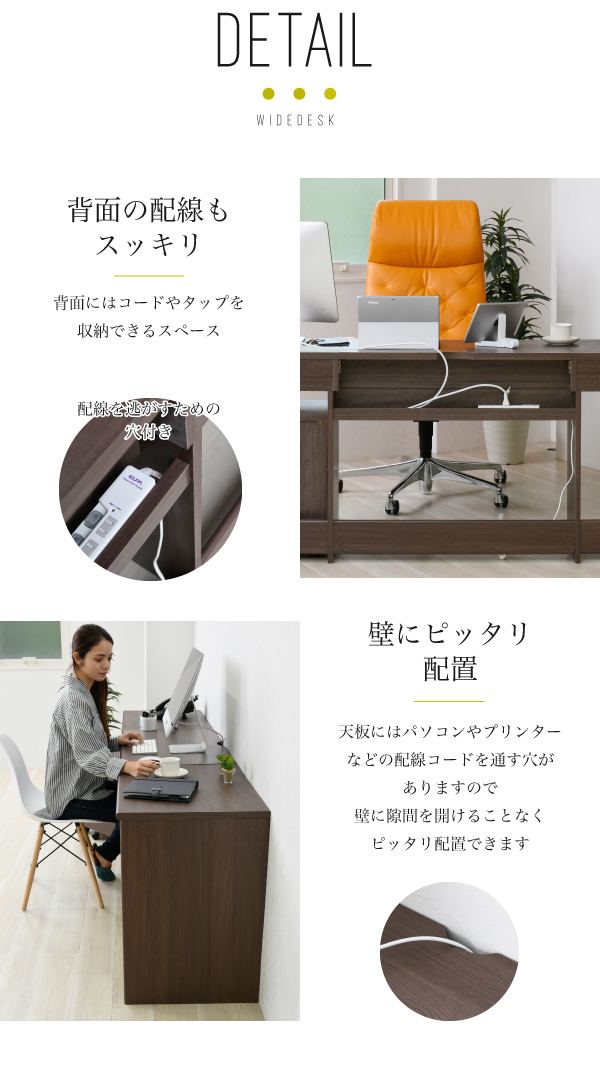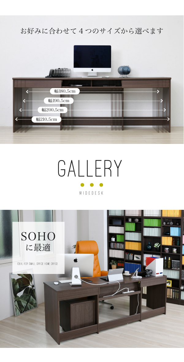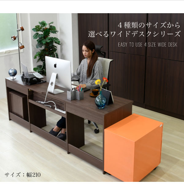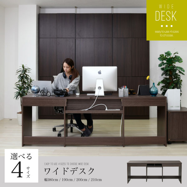 選べる4サイズ ワイドデスク 幅180/190/200/210cm ワークデスク オフィスデスク 書斎机 デスク 引き出し付き 配線収納 オフィス 書斎 木製 おしゃれ FWD-WIDESET