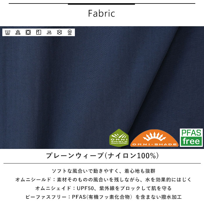 小雨程度の雨を弾く、はっ水(撥水)機能「オムニシールド」を備えたウーブンジャケット。