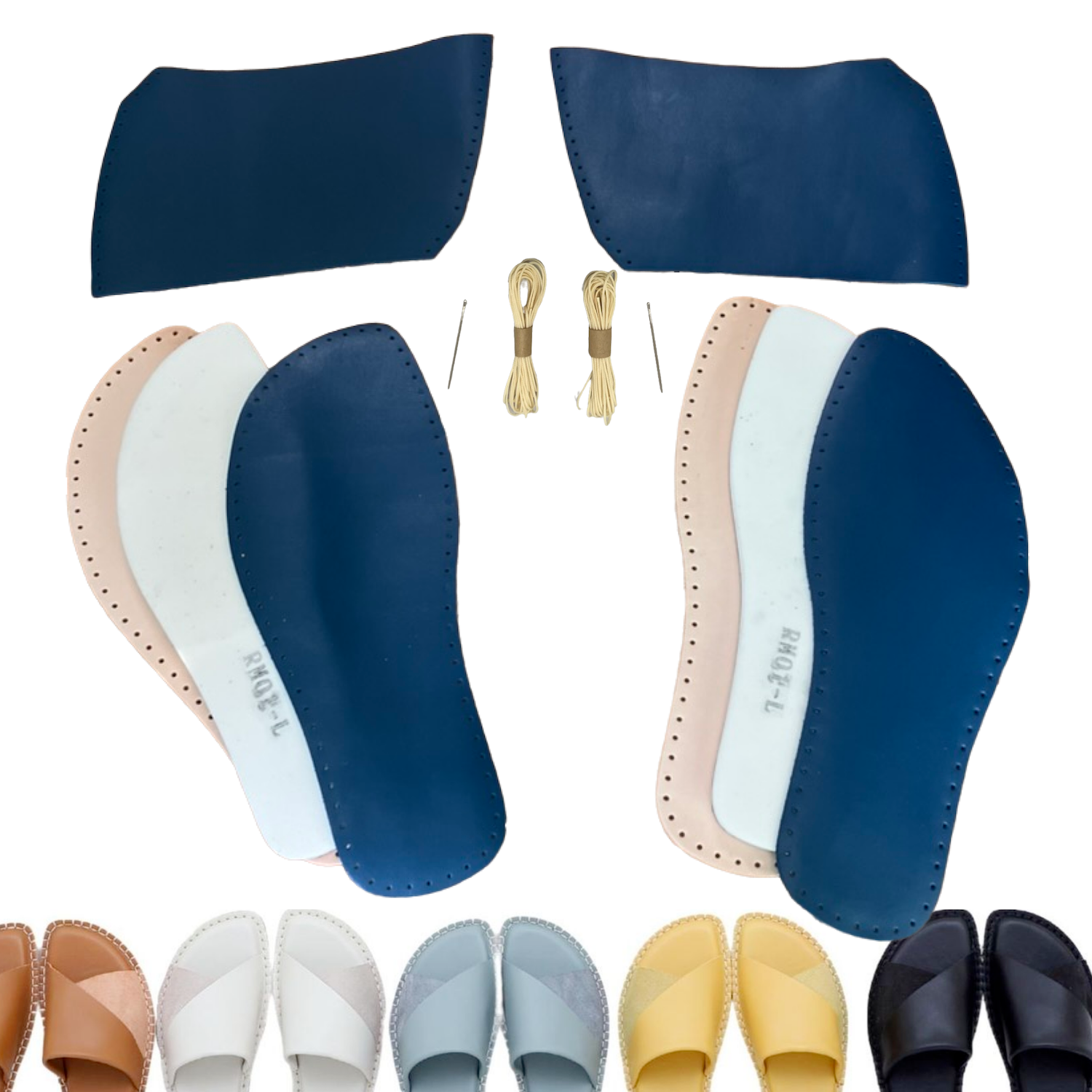[練習用:手作り組み立てキット]革素材に糸と針をセットし詳しい解説付きですので、どなたでも自分でルームシューズを組み立てることができます