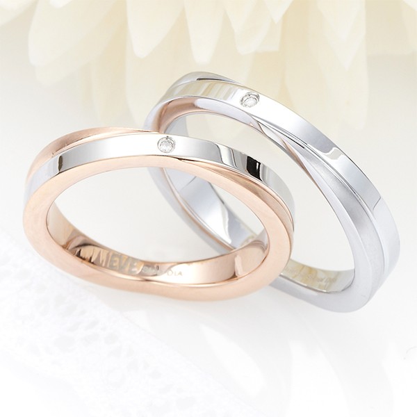 天然ダイヤモンド サージカルステンレス316L製 2つのラインがクロスしたペアリング 爆買