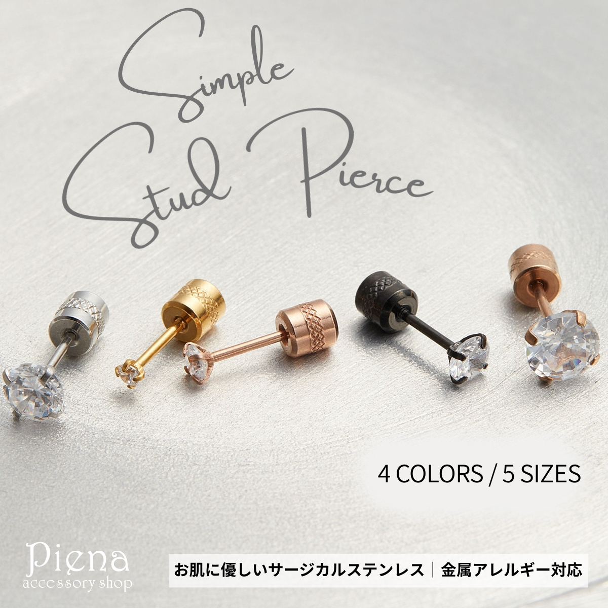 ピアス スタッド シンプル サージカルステンレス 金属アレルギー対応 シンプル 1個売り 裏ねじピアス ネジ式 一粒ピアス レディース メンズ ユニセックス お肌に優しい かわいい オシャレ 誕生日 記念日 プレゼント ギフト