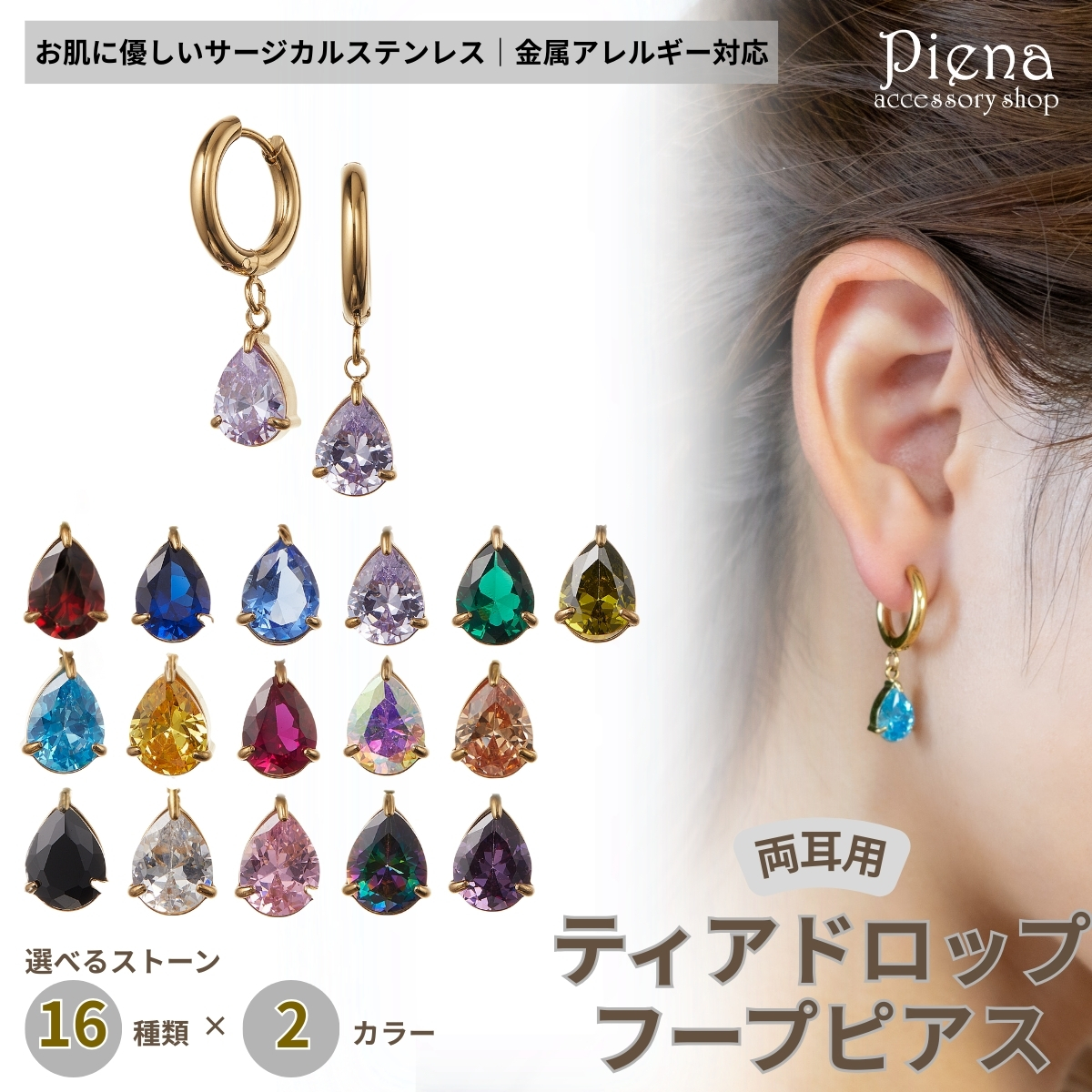 ピアス フープ ティアドロップ サージカルステンレス レディース 両耳用 金属アレルギー対応 フープピアス