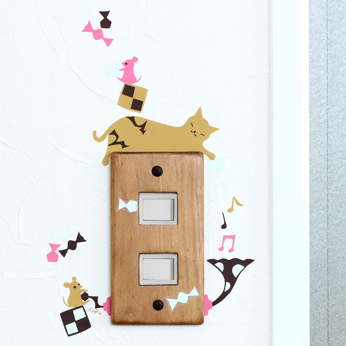 ウォールステッカー 猫のうたた寝シンフォニー 蛍光 スイッチ用ステッカー ハウスジーダ 張ってはがせる 爆買