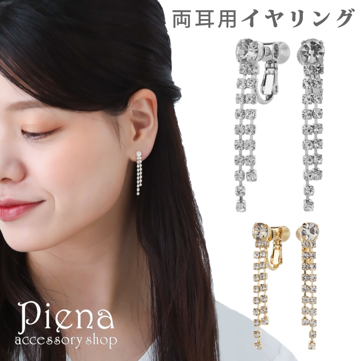 イヤリング レディース ラインストーン 2連 ライン 下がり 揺れる キラキラ ドレスに合う 華やか パーティー 上品 オシャレ かわいい 爆買
