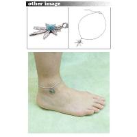 フレンチロープチェーン アンクレット ガンジャターコイズチャーム トルコ石 マリファナチャーム 足首にポイントマーク ユニセックス メンズライクでクールに 足首回り20cm(+3cm)1color 激安 メンズ レディース