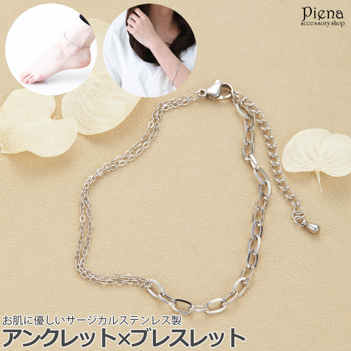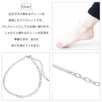 アンクレット ブレスレット サージカルステンレス製 左右非対称 チェーン アズキ 重ねづけ 2way 金属アレルギー対応 レディース 爆買